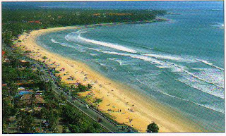 Pantai yang luas, berpasir putih dengan gemuruh gelombangnya menyenangkan bagi wisatawan peselancar.